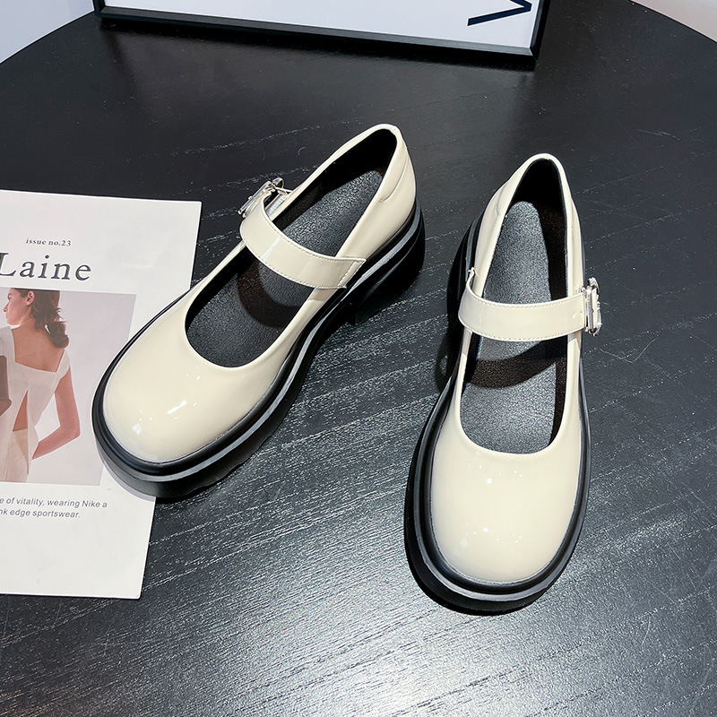 Popular elements: shallow mouth, sloping heel, thick heel, sponge heel, cross tie, buckle, waterproof platform, belt buckle Pattern: Solid color Inner material: microfiber Upper height: low cut Heel shape: Thick sole Sole technology: Adhesive shoes Wearing method: buckle Insole material: PU Style: Mary Jane shoes Shoe toe shape: round toe Shoe upper material: patent leather…