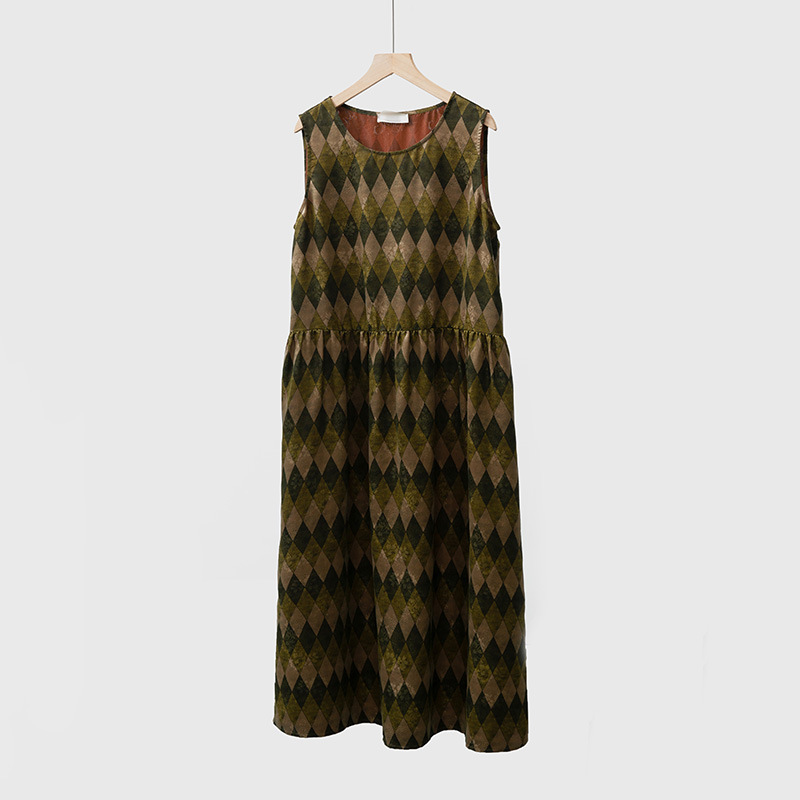 Silk fragrant cloud yarn round neck pocket printed loose vest dress women’s new mulberry silk long vest dress Fabric name: Silk Pattern: diamond pattern Technology: Printing Main fabric composition: mulberry silk
