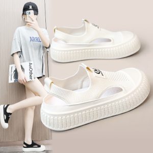 Spring and summer mesh breathable round toe solid color casual shoes increased thick sole sneakers student shoes